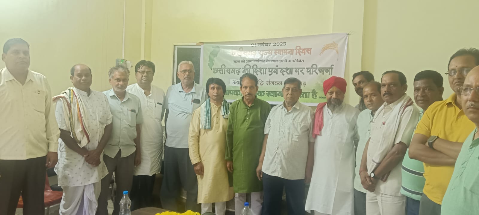 रायगढ़ (सृजन न्यूज)। 1 नवम्बर को कोलता समाज सामुदायिक भवन रायगढ़ में छत्तीसगढ़ राज्य स्थापना दिवस मनाया गया। किसान समृद्धि संगठन छत्तीसगढ़ (संयोजक) घनश्याम प्रधान के नेतृत्व से राज्य स्थापना दिवस के उपलक्ष्य में विभिन्न किसान संगठनों द्वारा छत्तीसगढ़ की दशा एवं दिशा विषय पर एक परिचर्चा आयोजित की गई। इसकी अध्यक्षता आजाद किसान सेना रायगढ़ के फतेचन्द पटेल ने की।