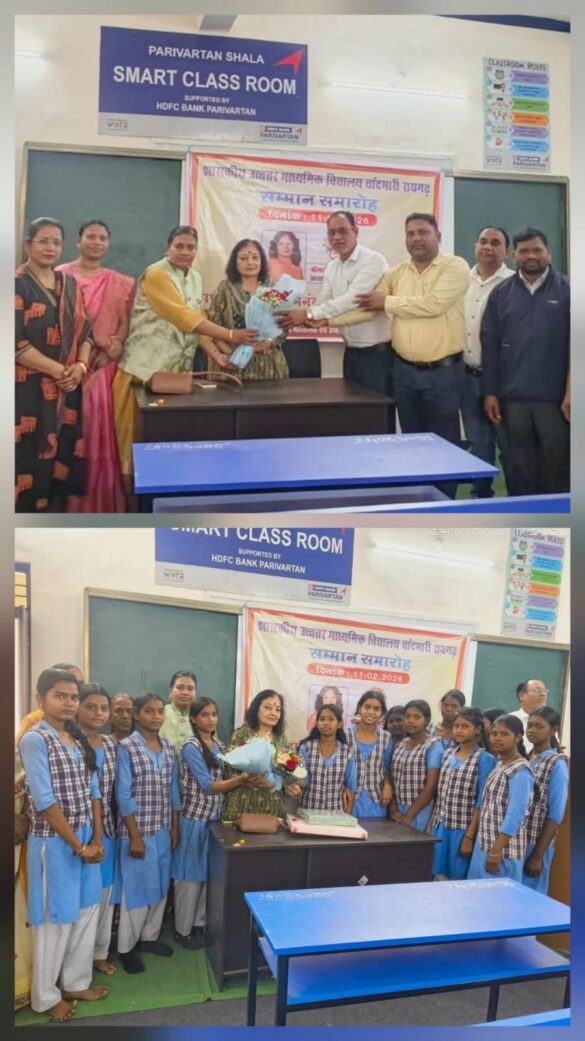 रायगढ़ (सृजन न्यूज)। शहर के चांदमारी स्थित शासकीय रविशंकर प्राथमिक, माध्यमिक और उच्चतर माध्यमिक विद्यालय के संयुक्त तत्वावधान में प्राचार्य श्रीमती दीप्ति अग्रवाल की प्रतिनियुक्ति राज्य शासन के आदेशानुसार राज्य शैक्षिक अनुसंधान एवं प्रशिक्षण परिषद रायपुर में सहायक प्राध्यापक के पद पर हो जाने के फलस्वरूप सम्मान समारोह आयोजित किया गया।