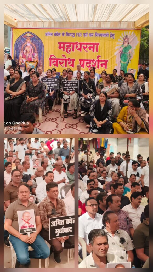 रायगढ़ (सृजन न्यूज)। एक कुंठित मानसिकता के व्यक्ति के द्वारा अग्रसेन महाराज भगवान झूलेलाल और देश के महापुरुष पर काफी अमर्यादित टिप्पणी के विरोध स्वरूप हजारों की संख्या में अग्रवाल समाज की महिला और पुरुषों ने धरना प्रदर्शन कर अपना आक्रोश व्यक्त करते हुए अमित बघेल के ऊपर छत्तीसगढ़ शासन और रायगढ़ के प्रशासन से राष्ट्रद्रोह सहित गंभीर धाराओं में अपराध दर्ज करने के लिए मांग रखी है।