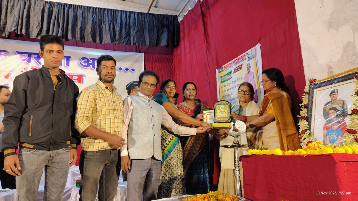 रायगढ़ (सृजन न्यूज)। देश के लिए बलिदान देने वाले वीर सपूतों और उनके परिवारजनों का सम्मान सदैव गौरवान्वित करता है। इसी देशभक्ति से ओतप्रोत, भव्य और गरिमामय मंच पर रायगढ़ की जानी-मानी साहित्यकार डॉ. आशा त्रिपाठी को पॉलिटेक्निक ऑडिटोरियम, रायगढ़ में “जो लौट के फिर ना आये” शहीद विप्लव त्रिपाठी मेमोरियल ट्रस्ट द्वारा आयोजित समारोह में “41वाँ काव्य वाटिका सम्मान” प्रदान किया गया।