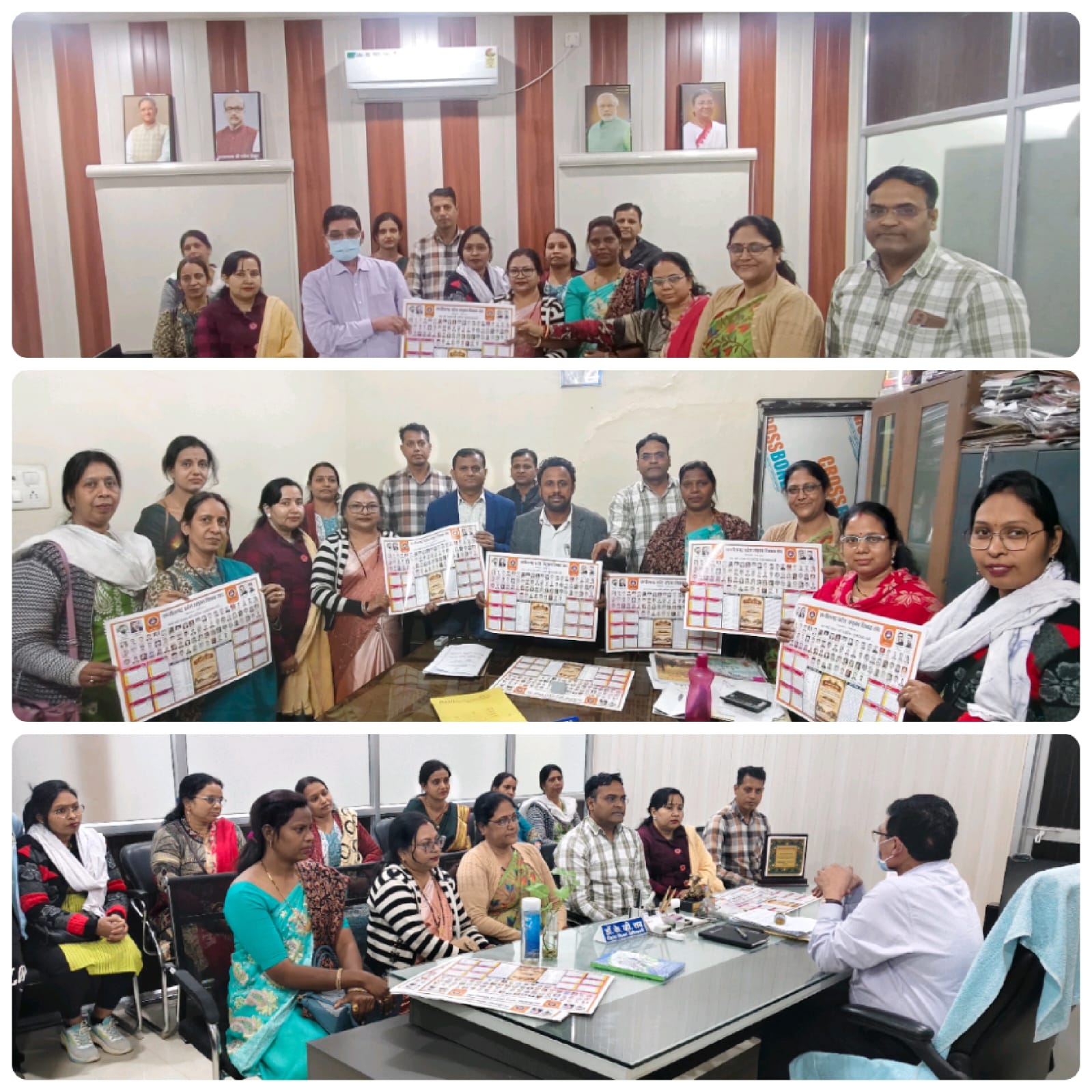 विमोचन के संगठन की प्रमुख मांगों में पदोन्नति, वरिष्ठता सूची में सुधार, अवकाश स्वीकृति, शिक्षादूत पुरस्कार, शनिवार को समय परिवर्तन, व्हीएस के एप में ऑनलाइन उपस्थिति न करने के संबध में की चर्चा की गई। वहीं, जिला शिक्षा अधिकारी ने समस्याओं का जल्द निदान करने की बात कही, साथ ही गुणवत्ता सुधार हेतु जिले में हो रहे कार्यों में सहयोग की अपेक्षा की गई।इसमें संगठन के पदाधिकारियों ने बढ़चढ़ कर भागीदारी निभाने की बात कही गई। बीईओ ऑफिस में भी विकासखंड शिक्षा अधिकारी व सहायक विकासखंड शिक्षा अधिकारी के समक्ष चर्चा परिचर्चा की गई। कैलेंडर संयोजन का कार्य संयुक्त शिक्षक संघ महिला प्रकोष्ठ ने किया।