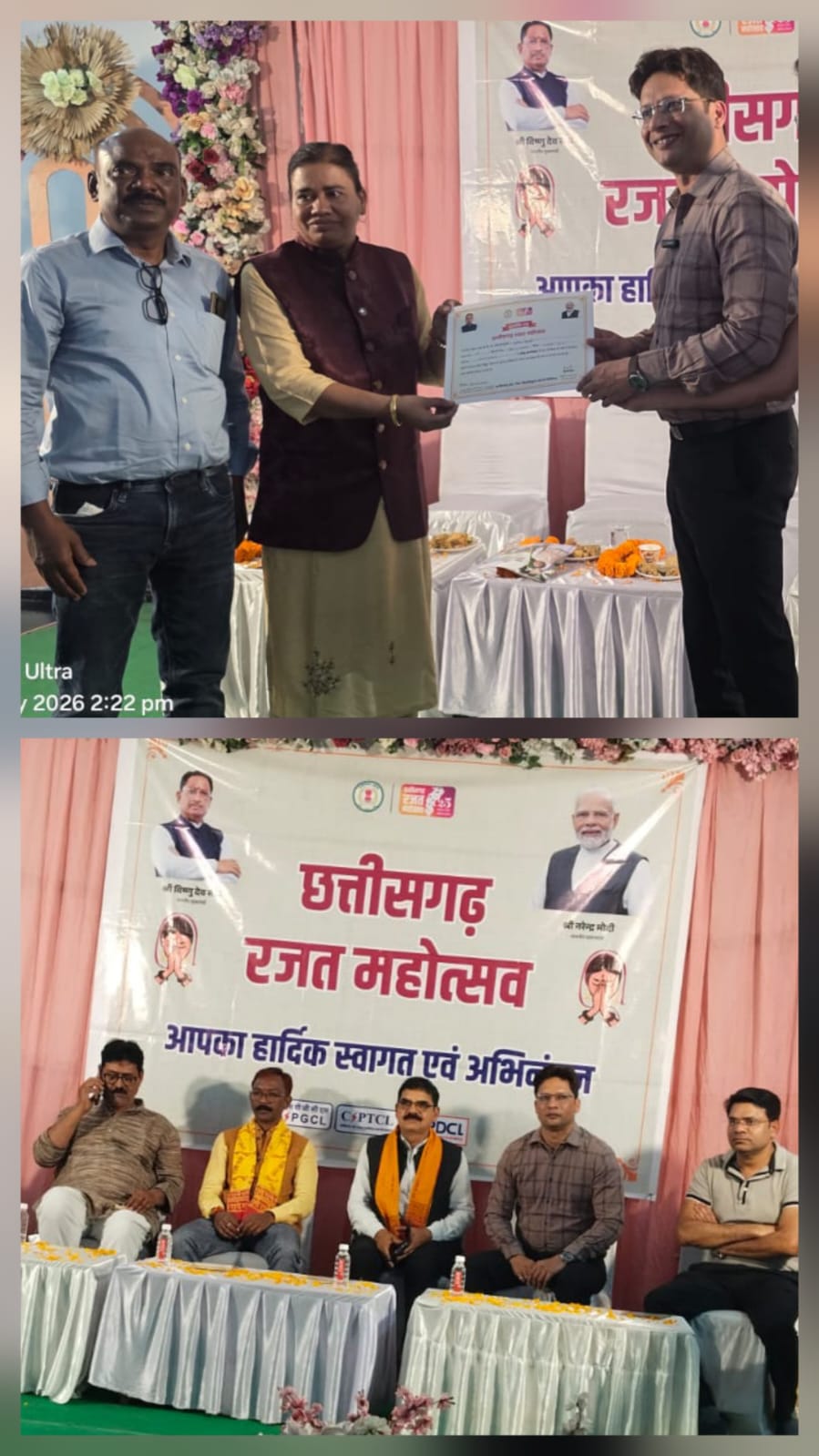शहर के चक्रधर नगर के बोईरदादर स्थित उत्सव मेरिज गार्डन में महापौर जीवर्धन चौहान, सभापति डिग्रीलाल, पूर्व पार्षद कौशलेष मिश्रा, क्षेत्रीय पार्षद महेश शुक्ला, विद्युत विभाग अधिकारी प्रमुख गुंजन शर्मा की गरिमामय उपस्थिति में राज्यपाल पुरस्कार से सम्मानित डॉ. मनीषा त्रिपाठी (प्रधान पाठक, शासकीय रविशंकर प्राथमिक शाला रायगढ़) को घरेलू उपभोक्ता के रूप में विगत दो वर्षों में नियमित (बिना बकाया राशि) विद्युत देयक का भुगतान कर सजग उपभोक्ता के रूप में अपनी विशिष्ट पहचान बनाने हेतु उनके प्रयासों की सराहना करते हुए प्रशस्ति पत्र से सम्मानित किया।