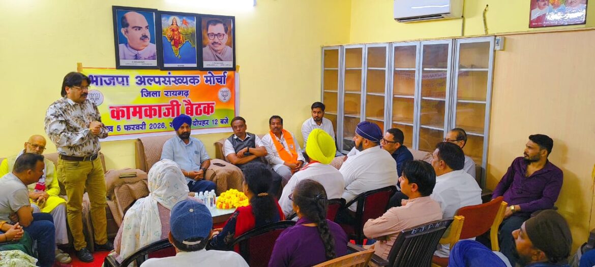 रायगढ़ (सृजन न्यूज)। भाजपा अल्पसंख्यक मोर्चा की प्रथम कामकाजी एवं परिचात्मक बैठक आज अनुशासित व सकारात्मक वातावरण में सफलतापूर्वक संपन्न हुई। बैठक का मुख्य उद्देश्य संगठन को जमीनी स्तर पर सशक्त बनाना, आगामी कार्यक्रमों की रूपरेखा तय करना तथा केंद्र एवं राज्य सरकार की जनकल्याणकारी योजनाओं को अल्पसंख्यक समाज तक प्रभावी रूप से पहुँचाने को लेकर विस्तृत चर्चा करना रहा।