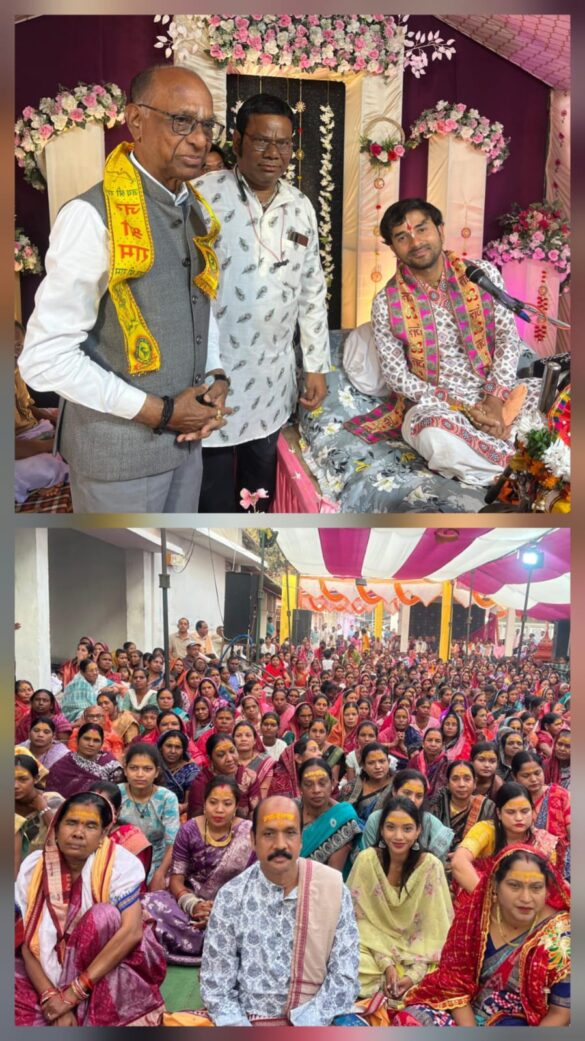 पूर्व विधायक विजय अग्रवाल ने व्यासपीठ में टेका मत्था, कथावाचक का लिया आशीर्वाद