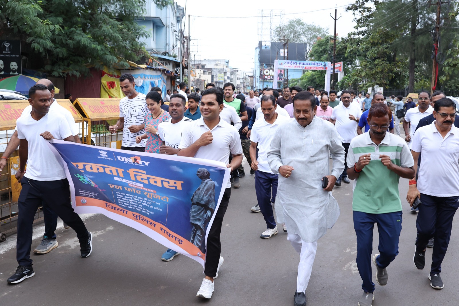 पूरे मार्ग में “भारत माता की जय” और “सरदार पटेल अमर रहें” के नारों से वातावरण गुंजायमान रहा। बच्चों और युवाओं में देशभक्ति और एकता का जोश देखने लायक था। इस अवसर पर राज्यसभा सांसद देवेंद्र प्रताप सिंह ने कहा कि “राष्ट्र की एकता और अखंडता के प्रतीक लौह पुरुष सरदार वल्लभभाई पटेल ने आजादी के बाद देश की अनेक रियासतों को भारत में मिलाकर एक सशक्त राष्ट्र निर्माण किया। उनके दृढ़ संकल्प और दूरदर्शिता से ही अखंड भारत की नींव रखी गई। महापौर जीवर्धन चौहान ने कहा कि राष्ट्रीय एकता दिवस हमें यह प्रेरणा देता है कि हम सभी देश की एकता और अखंडता के लिए समर्पित रहें तथा सरदार पटेल के आदर्शों को अपने जीवन में अपनाएं। कलेक्टर मयंक चतुर्वेदी ने अपने संबोधन में कहा कि सरदार पटेल ने अपने अदम्य साहस, दूरदृष्टि और नेतृत्व क्षमता से भारत को एक सूत्र में पिरोने का कार्य किया। वे सच्चे अर्थों में राष्ट्र की एकता और अखंडता के प्रतीक थे। एसपी दिव्यांग पटेल ने कहा कि एकता दौड़ का उद्देश्य यह संदेश देना है कि भारत में रहने वाले सभी वर्ग, समुदाय और क्षेत्र के लोग एक हैं और सदैव एक रहेंगे। उन्होंने बताया कि सरदार वल्लभ भाई पटेल के 150 वीं जयंती के अवसर पर जिला मुख्यालय में एकता दौड़ के साथ जिले के सभी थाना क्षेत्र में भी विविध कार्यक्रमों का आयोजन किया गया।