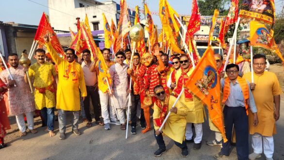 रायगढ़ (सृजन न्यूज)। रामभक्त हनुमान के जन्मोत्सव की खुशी में रायगढ़ भी जयश्री राम के नारों से गूंजता रहा। गुरुवार सुबह कमला नेहरू गार्डन से मॉर्निंग वॉकर्स सोसायटी ने भव्य निशान यात्रा निकालते हुए गजमार पहाड़ के हनुमान मंदिर में चोला चढ़ाया। वहीं, जगह-जगह संगीतमय भजन-कीर्तन और भंडारे से अंचल राममय नजर आया।