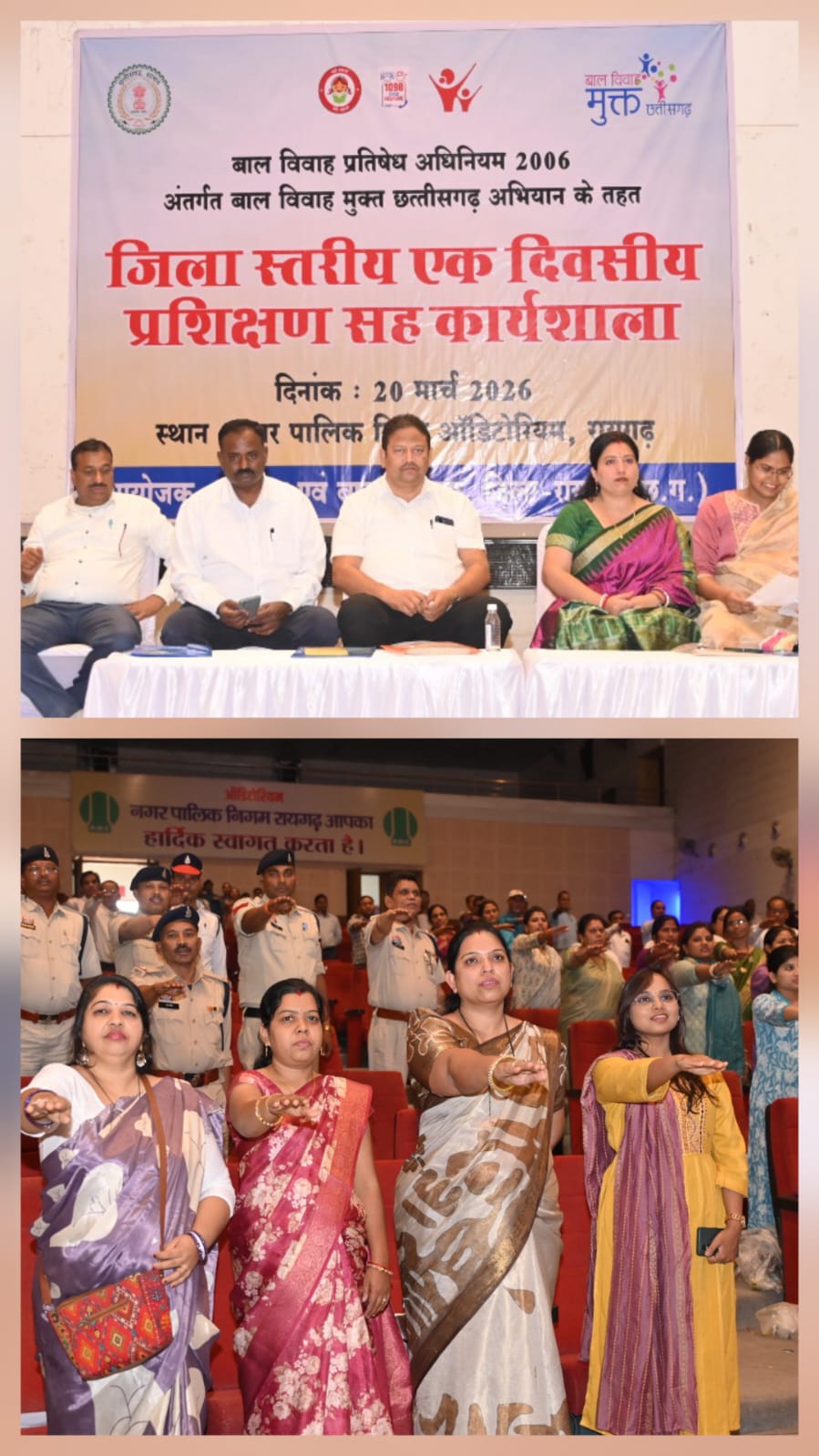 रायगढ़ (सृजन न्यूज)। महिला एवं बाल विकास विभाग रायगढ़ द्वारा नगर पालिक निगम ऑडिटोरियम में बाल विवाह प्रतिषेध अधिनियम 2006 के अंतर्गत “बाल विवाह मुक्त छत्तीसगढ़” अभियान के तहत जिला स्तरीय एक दिवसीय प्रशिक्षण सह कार्यशाला का आयोजन किया गया। कार्यक्रम का मुख्य उद्देश्य जिले को बाल विवाह की कुप्रथा से मुक्त करना तथा अधिकारियों एवं कर्मचारियों को कानूनी प्रावधानों की विस्तृत जानकारी देकर जमीनी स्तर पर प्रभावी कार्रवाई सुनिश्चित करना था। यह कार्यशाला कलेक्टर मयंक चतुर्वेदी के निर्देश, जिला पंचायत के मुख्य कार्यपालन अधिकारी अभिजीत बबन पठारे तथा जिला कार्यक्रम अधिकारी एलआर कच्छप के मार्गदर्शन में आयोजित की गई।