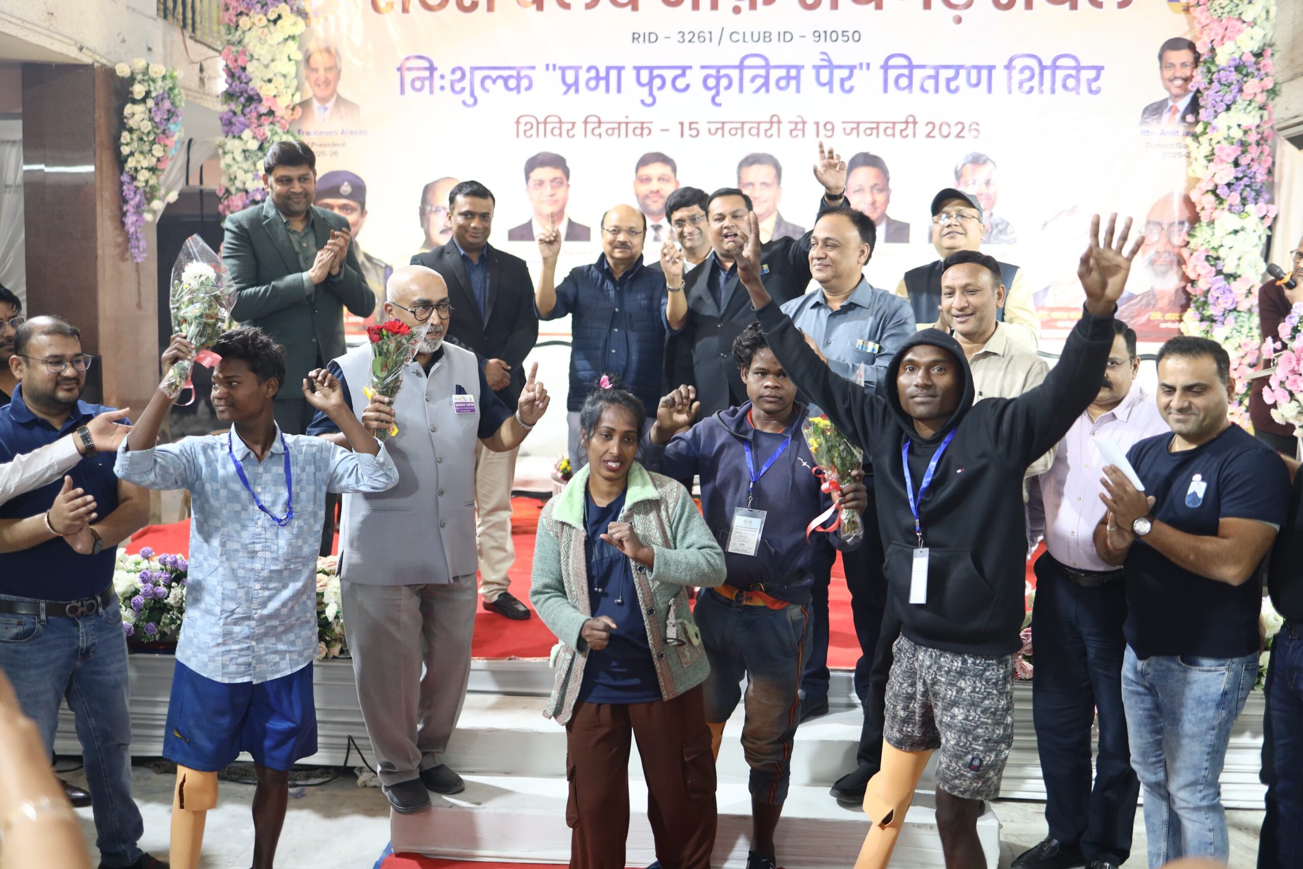 रायगढ़ (सृजन न्यूज)। समाजसेवा के क्षेत्र में कामयाबी का नव इतिहास बना रहा रोटरी क्लब ऑफ रायगढ़ रॉयल के सदस्यों ने एक बार पुनः निःशुल्क 5 दिवसीय प्रभा फुट कृत्रिम पांव वितरण शहर के अग्रोहा भवन में आयोजित कर समाज को उत्कृष्ट मानवता का परिचय दिया। जब जिंदगी से बेबस हुए लोग जब अपने पैरों से खड़े होकर चले और देशभक्ति गीत संग मुस्कुराते हुए थिरके तो वह पल भी हर किसी के लिए यादगार बन गया। आज 4 साल के बच्चे की चेहरे की मुस्कान देखने को मिली, आज अपने पैर पर चलकर अपने घर गया।