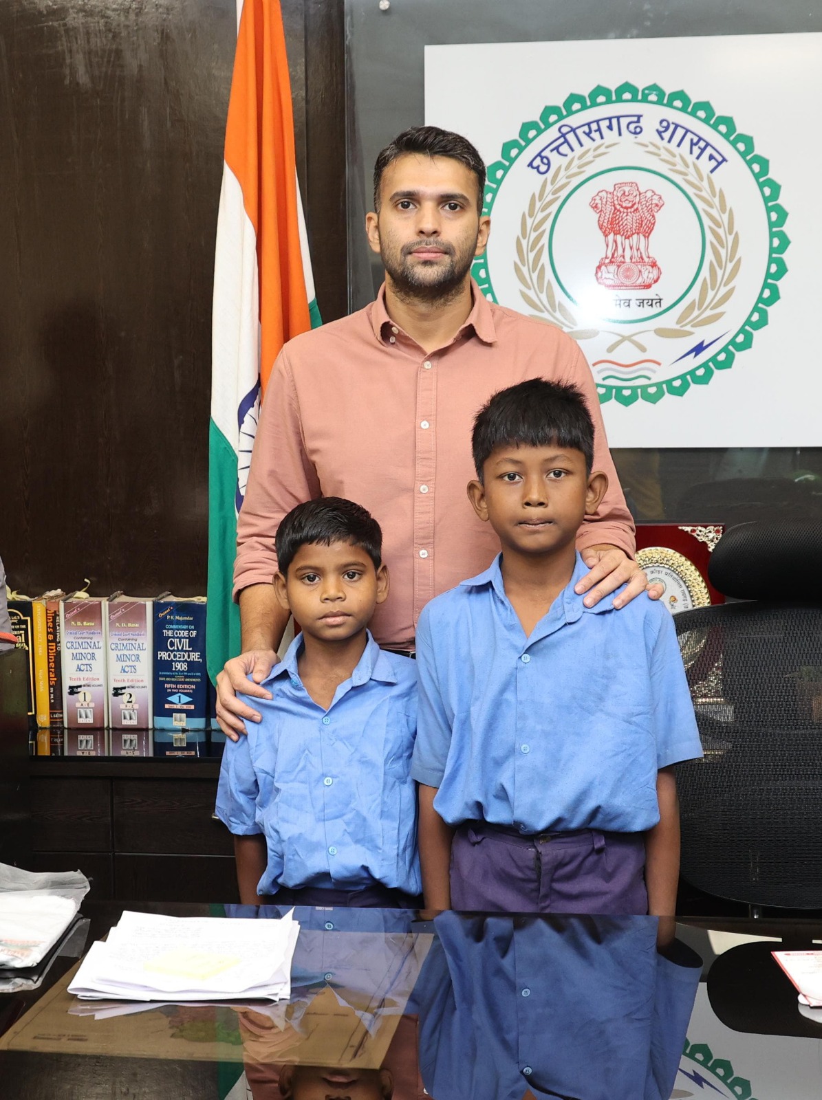 रायगढ़ (सृजन न्यूज)। कलेक्टर मयंक चतुर्वेदी ने आज जिला कलेक्टोरेट में दो साहसी बच्चों राकेश मिंज और आर्यन खेस से भेंट कर उनके अदम्य साहस की सराहना की। इन दोनों बच्चों ने अपने साहस और सूझबूझ से 5 वर्षीय बालक दादू मिंज को नाले के बहते पानी में डूबने से बचाकर उसकी जान बचाई थी।