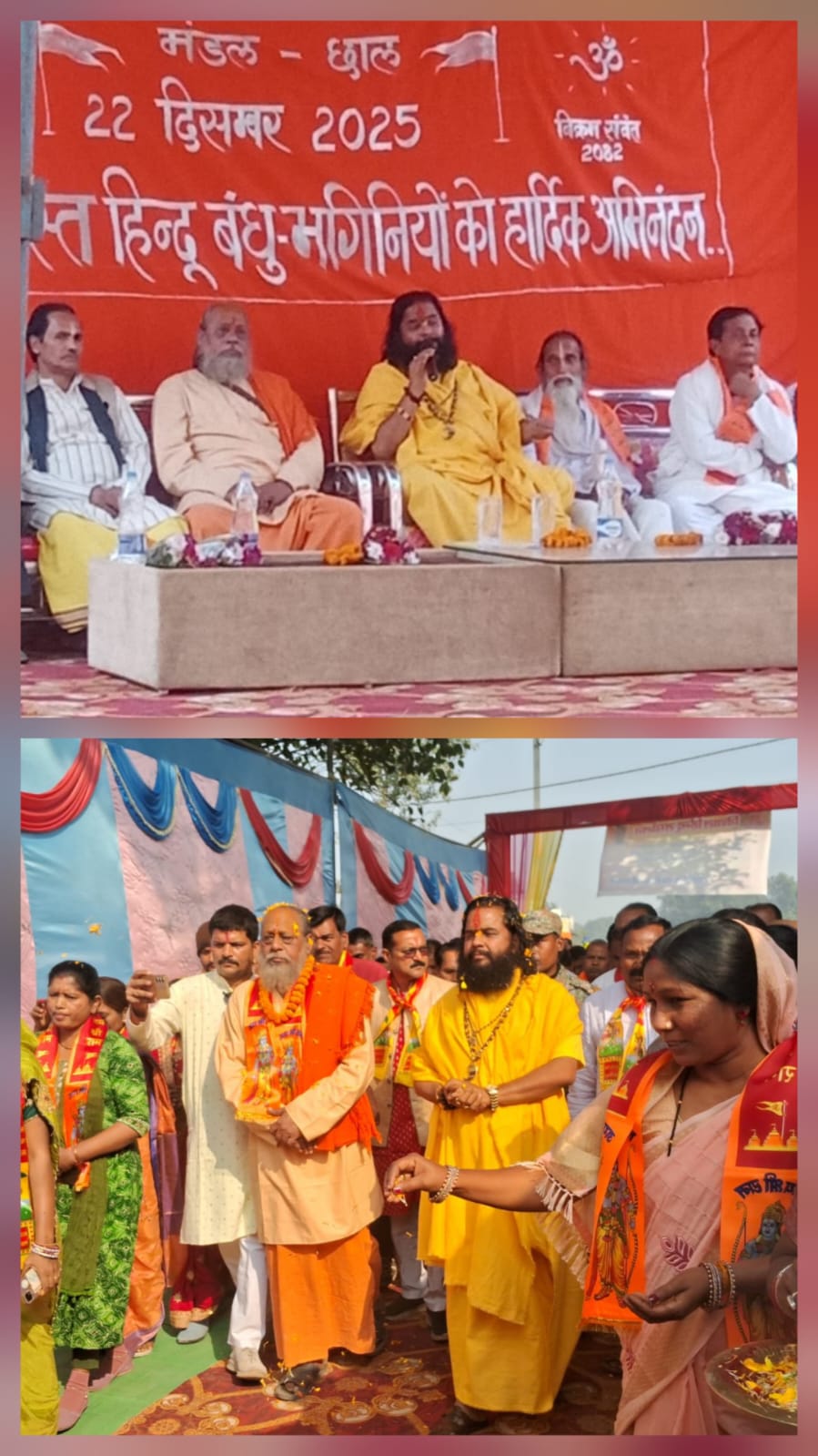 छाल/रायगढ़ (सृजन न्यूज)। क्षेत्र में सनातन संस्कृति के प्रचार-प्रसार और सामाजिक समरसता को बढ़ावा देने के उद्देश्य से, रायगढ़ जिले के छाल स्थित मंगल भवन प्रांगण में 22 दिसम्बर को एक भव्य ‘विराट हिन्दू समागम’ का आयोजन किया गया। विशाल हिन्दू सम्मेलन मण्डल (छाल) द्वारा आयोजित इस कार्यक्रम में साधु-संतों और धर्म प्रेमियों का महाकुंभ देखने को मिला ।