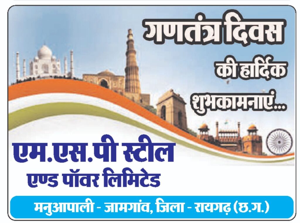 रायगढ़ (सृजन न्यूज)। शहर के लक्ष्मीपुर स्थित सरस्वती शिशु मंदिर में 77वां गणतंत्र दिवस बड़े ही धूमधाम के साथ मनाया गया। मुख्य अतिथि के रूप में विजय अग्रवाल (एनआर इस्पात के संचालक) रहे। कार्यक्रम की अध्यक्षता प्रबंध समिति के अध्यक्ष दिलीप मोडक ने की। विशिष्ट अतिथि एलपी कटकवार (व्यवस्थापक), वीरेंद्र विश्वकर्मा (विभाग समन्वयक) गणेश चंद्र यादव (जिला प्रतिनिधि), आनंद अग्रवाल (सदस्य प्रबंध समिति) उपस्थित रहे।